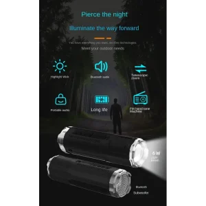 Portable Bluetooth Speaker With Zoomable Flashlight – 4 Dimming Modes FM Radio Long Lasting Life